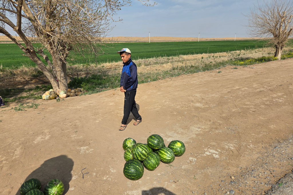 Chłopak sprzedający irańskiej arbuzy. Był nieco speszony obecnością obcokrajowców.