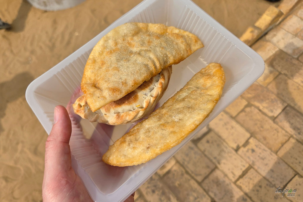Różne rodzaje smażonych albo wypiekanych (np. samsa lub gutap) chlebków wypełnionych mięsem. Wypiekane są często w glinanym piecu tandoor.