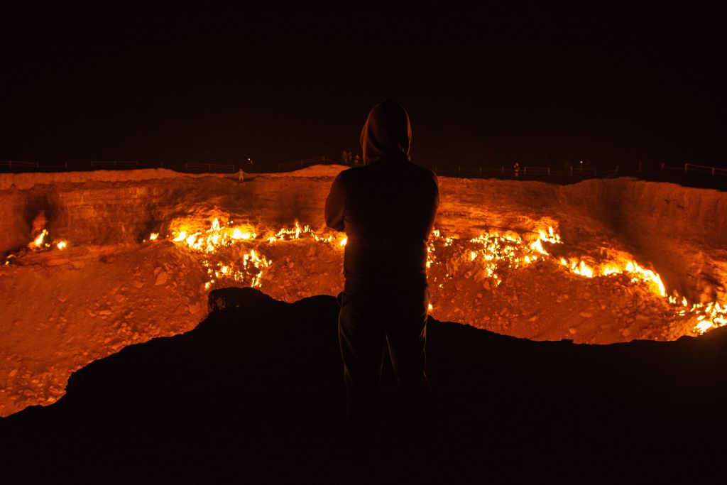 Rejon Derweze jest bogaty w gaz ziemny. W 1971 roku przewiercono płytko położone złoże, w wyniku czego doszło do zapadnięcia się ziemi pozostawiając lej o głębokości około 20 m i średnicy 70 m. Nie chcąc zanieczyszczać gazem atmosfery, radzieccy naukowcy zdecydowali się go podpalić. Zakładano, że złoże wypali się po kilku dniach. Jednak płonie ono do dzisiaj, choć z każdym rokiem w coraz mniej miejscach. Dziś miejsce to nazywane jest "wrotami do piekieł".