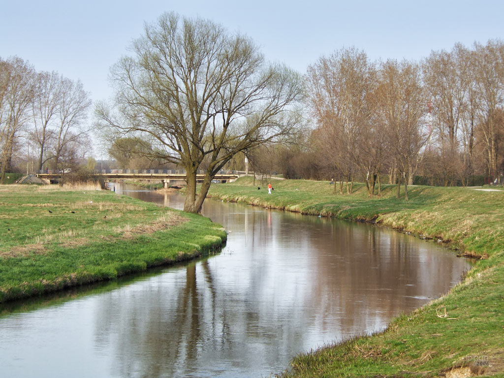 Rzeka Krzna przy Al. Tysiąclecia w pobliżu bazaru. W tle znajduje się stary most, obecnie jest inny.