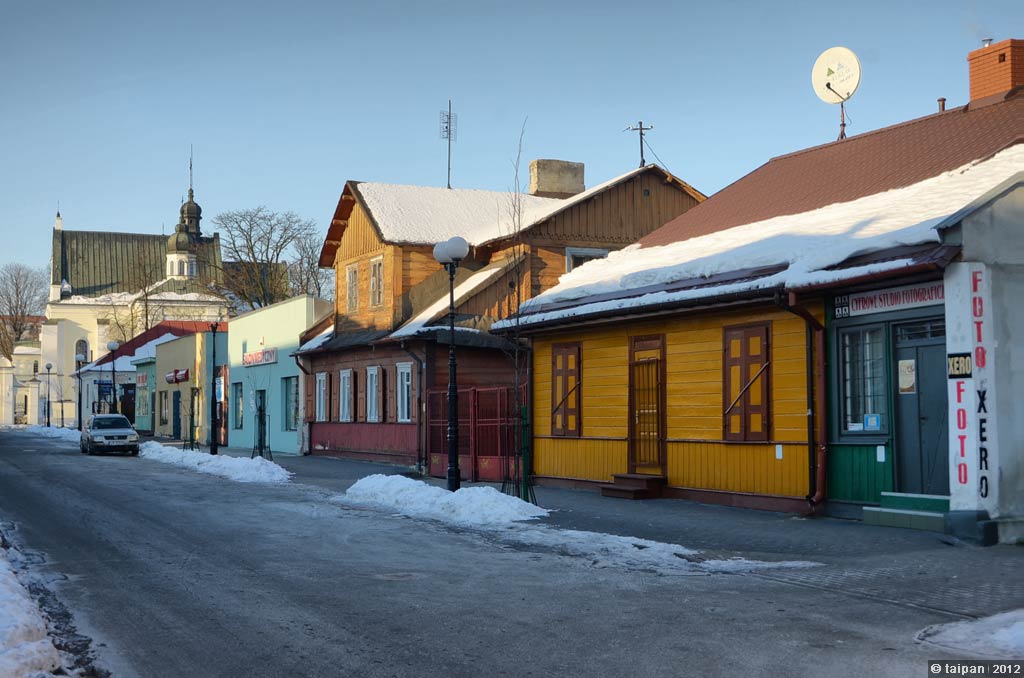 Drewniane zabudowania przy ul. Józefa Ignacego Kraszewskiego.
