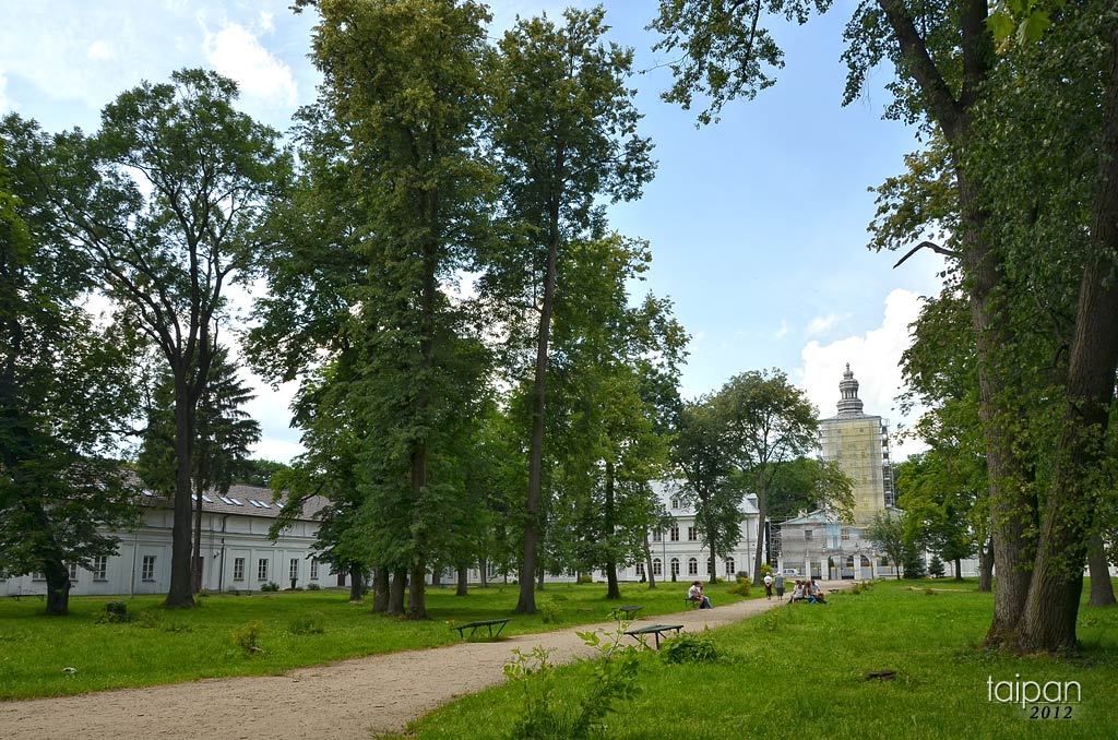 Zabytkowa wieża wjazdowa z XVII w. w zespole pałacowo-parkowym Radziwiłłów przy ul. Warszawskiej, podczas remontu w czerwcu 2012 r. Na zdjęciu widoczny jest park przed rewitalizacją zakończoną pod koniec 2013 roku.