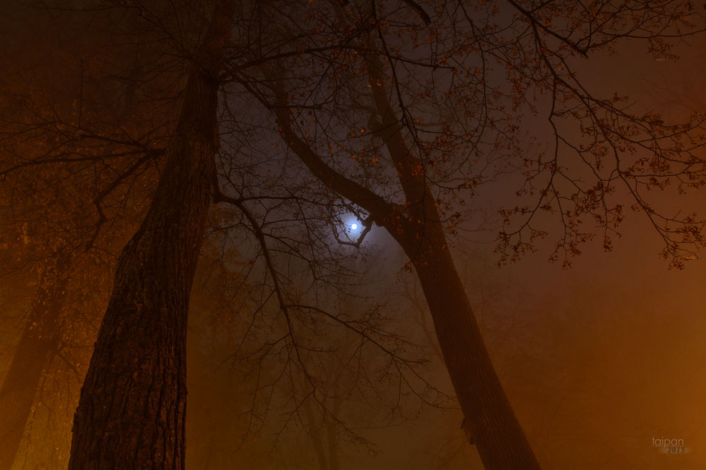 Parku Radziiłów podczas jesiennych mgieł w 2015 roku.