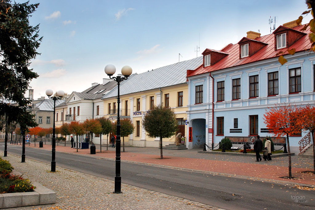 Zabytkowe kamienice znajdujące się w północnym skrzydle rynku miasta przy Placu Wolności. W oddali znajduje się budynek Magistratu z 1843 r. - obecnie siedziba Urzędu Miasta. wzniesiony przy Placu Wolności w 1843 r., także dzisiaj siedziba władz miejskich. W pobliżu znajduje się Miejsce Pamięci Narodowej - "ściana straceń" przy której, w czasie II wojny światowej naziści rozstrzeliwali mieszkańców miasta.