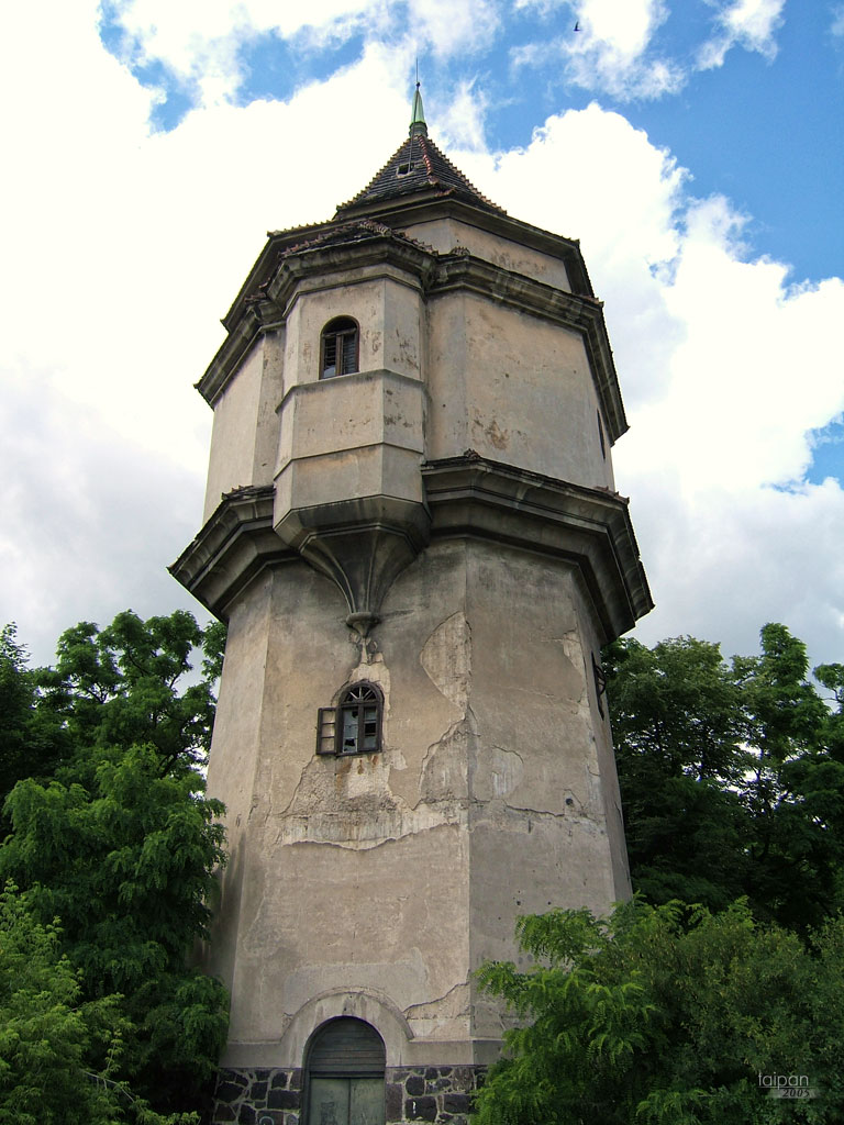 Zabytkowa wieża ciśnień z 1928 r. położona w pobliżu Ronda Romana Dmowskiego i dworca kolejowego