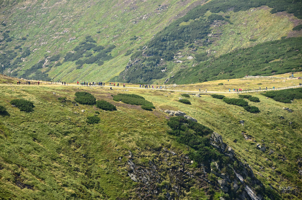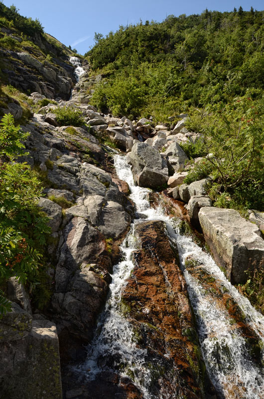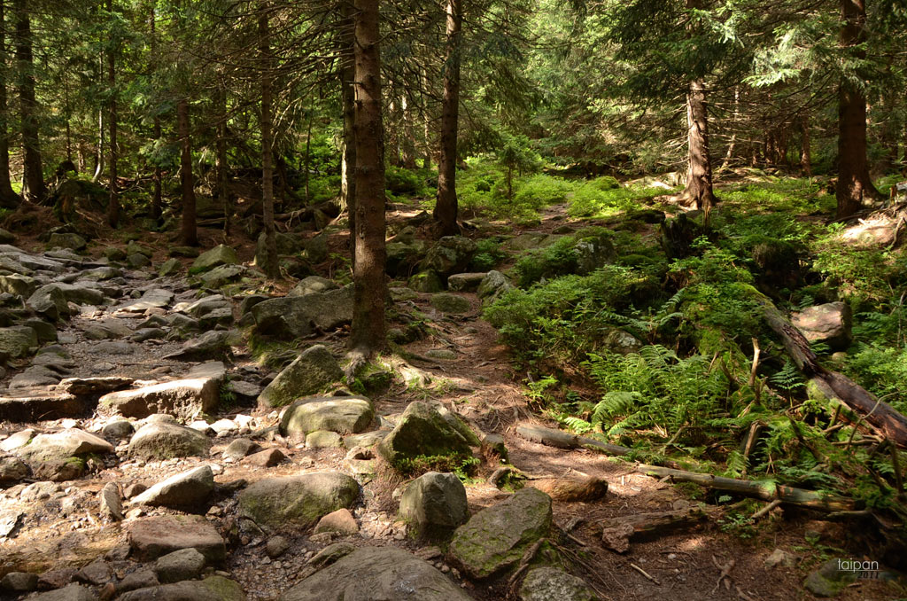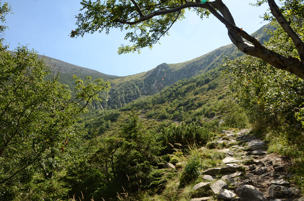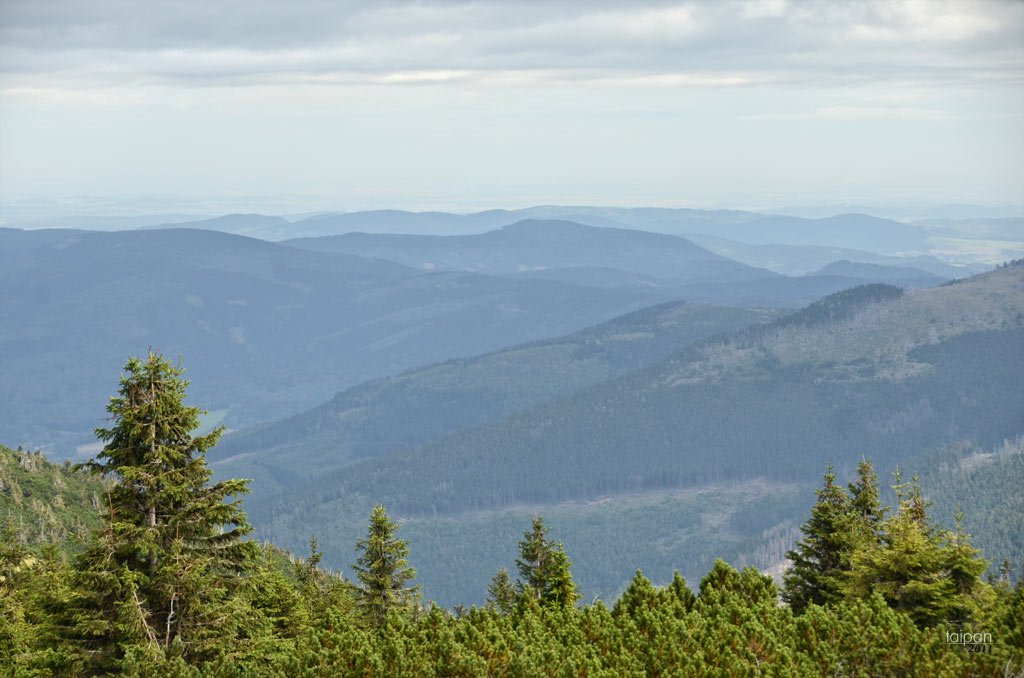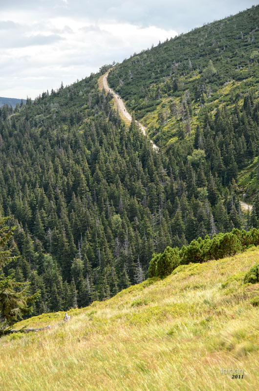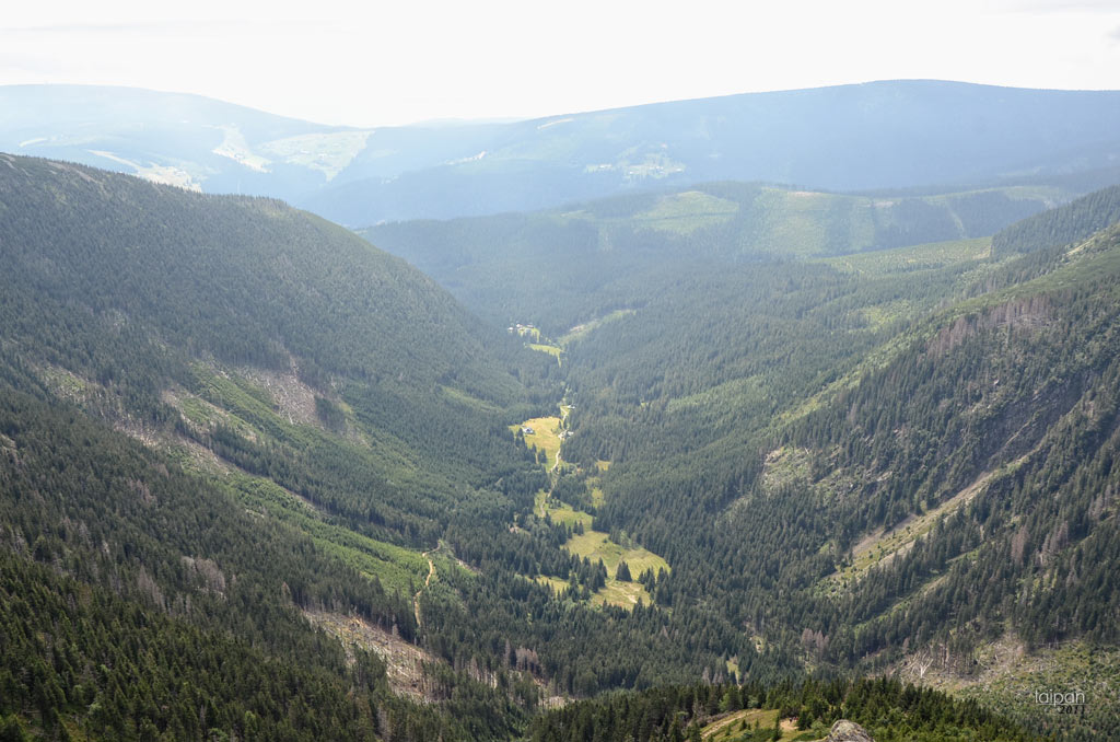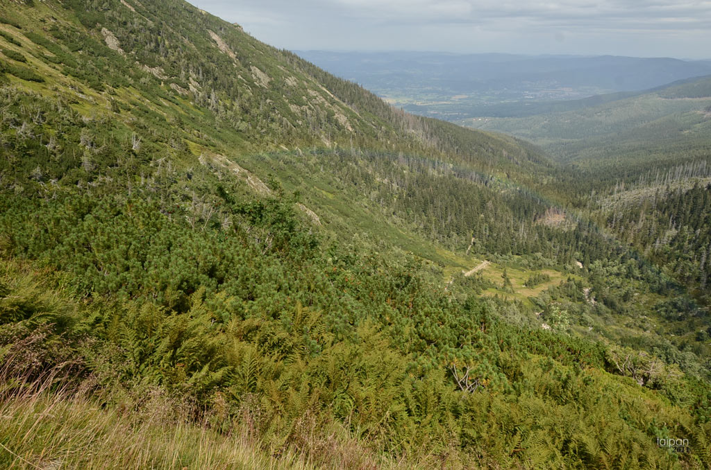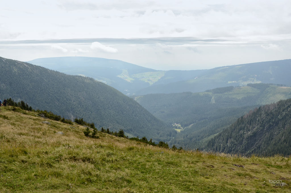 Karkonoski Park Narodowy. Wejście łagodnym, ale długim i malowniczym szlakiem niebieskim na Śnieżkę, która ma około 9 km (około 2,5-3 godz.). Początek trasy jest przy świątyni Wang przy ul. Karkonoskiej. Dalej mija się Rówienka, Polanę, Kozi Mostek. Dochodzi się do Małego Stawu, przy którym znajduje się Schronisko "Samotnia". Dalej jest wejście pod górę do Schroniska "Strzecha Akademicka". Dalej szlak prowadzi do Drogi Przyjaźni Polsko-Czeskiej, która przebiega przy granicy państw. Następnie jest długa prosta droga prowadząca do żółtego Schroniska pod Śnieżką (Dom Śląski), gdzie jest rozwidlenie kilku szlaków. Przed nami już tylko wejście na szczyt. Ja wybieram trasę krótszą ale bardziej stromą. Na Śnieżce (1602 n.p.m.) znajduje się schronisko, obserwatorium i kaplica. Droga powrotna to 8 km (ok. 2,5 godz.). Wracam alternatywną drogą Jubileuszową do Domu Śląskiego. Tam wybieram szlak czerwony, który jest na początku dosyć męczący dla stawów, ponieważ stopnie są bardzo wysokie. Sam szlak posiada duże walory widokowe. Najpierw schodzi się po stromym zboczu przez Przełęcz "Pod Śnieżką", gdzie mija się między innymi Wodospad Łomniczki i skąd znajduje się piękny widok na Śnieżkę. Dalej ścieżka jest już mniej wymagająca aż do Schroniska "Nad Łomniczką". Od tego miejsca trasa jest typowo spacerowa i wiedzie przez las. Wyjście z lasu jest przy dolnej stacji wyciągu narciarskiego w pobliżu ulicy Olimpijskiej.