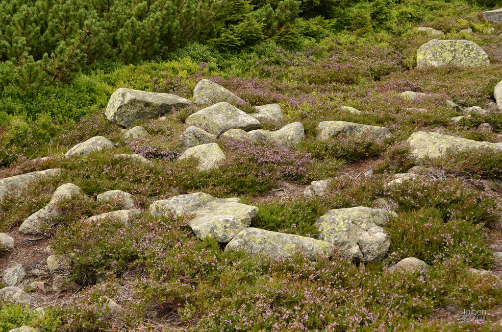 Skały w pobliżu Małego Stawu na szlaku niebieskim.