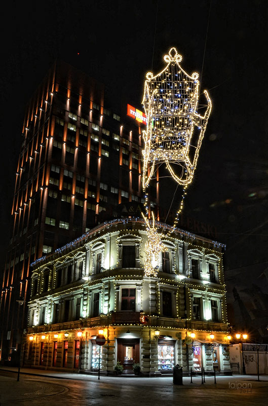 Przyozdobiona światłami świątecznymi ulica Piotrkowska na przełomie lat 2013/2014