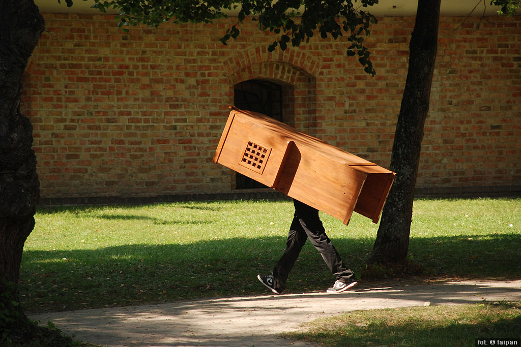 Porządkowanie placu w Kodniu po uroczystościach 15 sierpnia (dzień Wniebowzięcia Najświętszej Marii Panny).