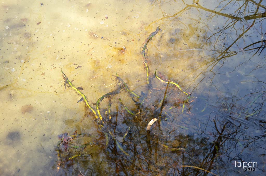 Poleski Park Narodowy - ścieżka przyrodnicza "Dąb Dominik", początek wiosny. Na zdjęciu wyrobisko po torfie zalane wodą (torfianka), miejsce bytkowania licznych płazów, m.in. żółwia błotnego.