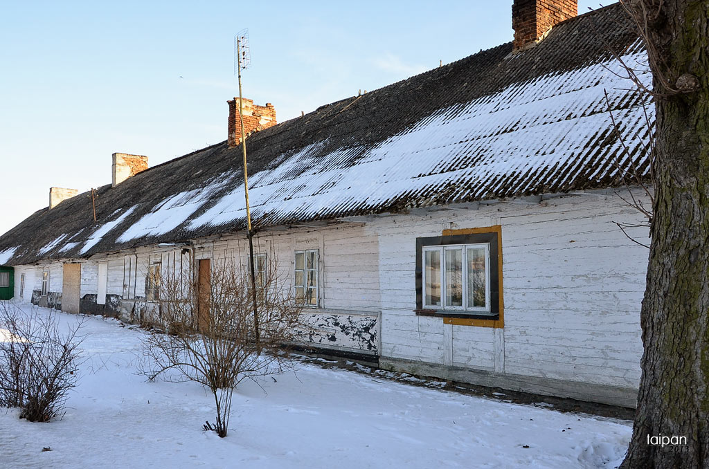 Nietypowy, drewniany budynek mieszkalny, o długości około 50 m, położony przy głównej drodze prowadzącej przez wieś, przy przystanku autobusowym.