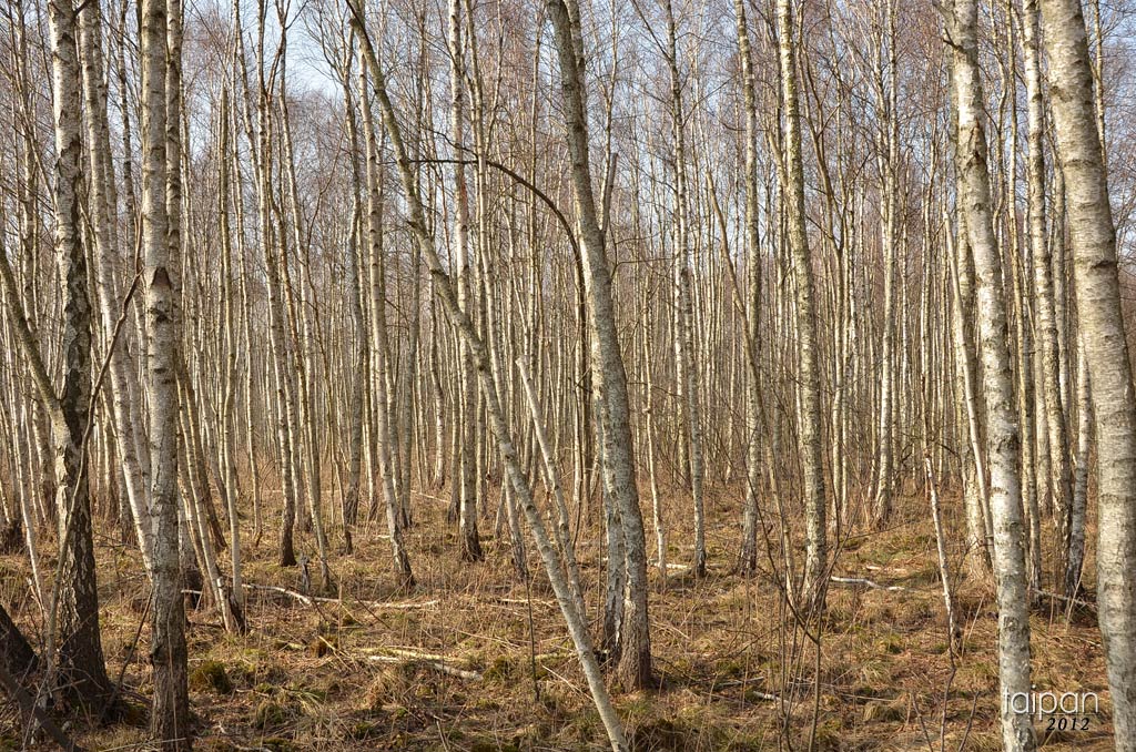 Poleski Park Narodowy - ścieżka przyrodnicza "Spławy". Na zdjęciu subborealna brzezina bagienna.