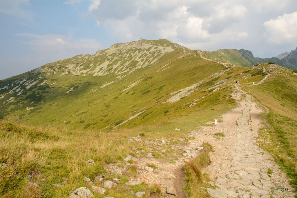 Tatrzański Park Narodowy. Wejście z Kuźnic niebieskim szlakiem najpierw na Giewont (1894 m n.p.m.), dalej przejście żółtym szlakiem na Kopę Kondracką (2005 m n.p.m.) i na końcu wejście na Kasprowy Wierch (1987 m n.p.m.).