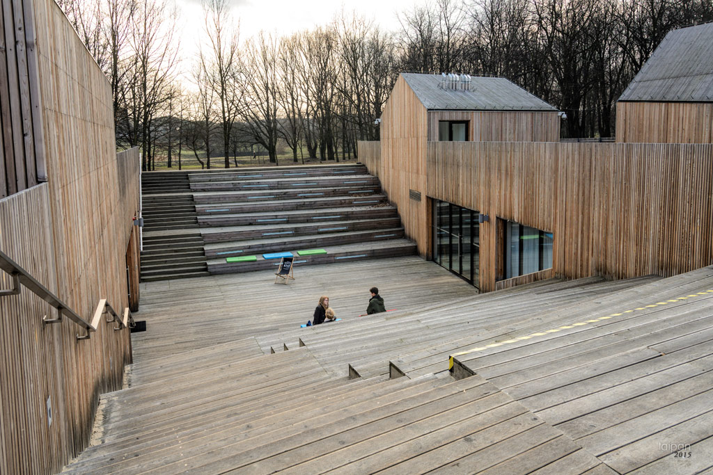 Służewiecki Dom Kultury nawiązujący do ekologicznego gospodarstwa wiejskiego.