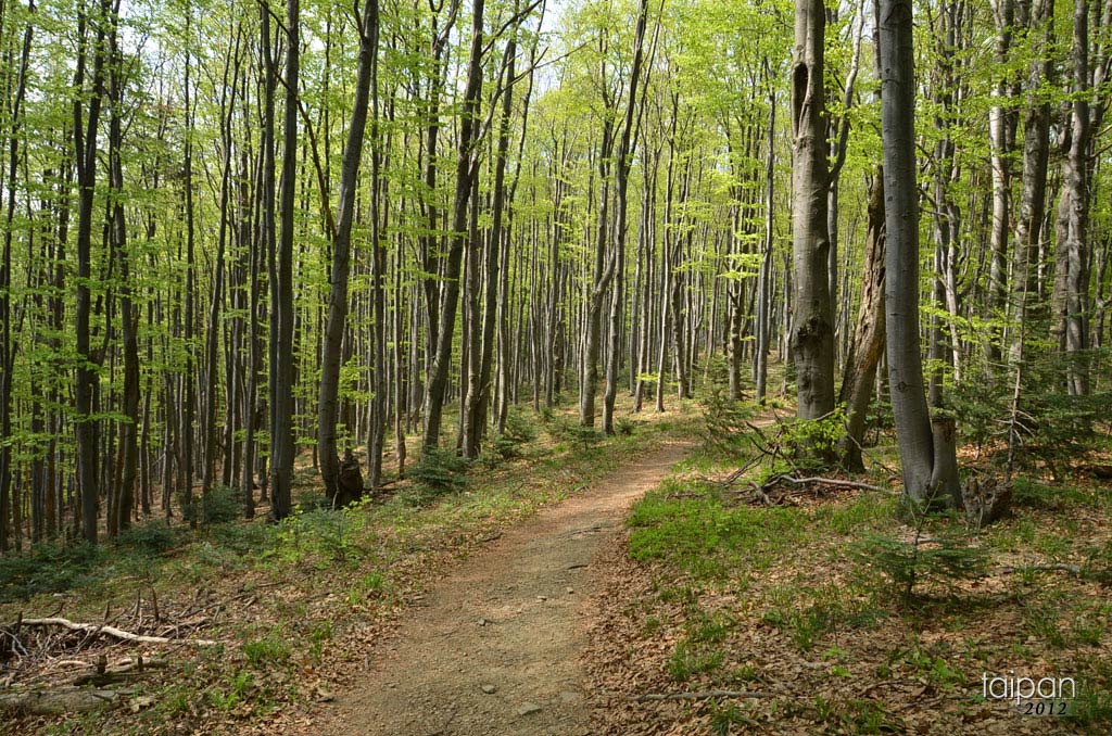 Bieszczadzki Park Narodowy. Wejście szlakiem czerwonym od strony Cisnej na Jasło (1153 m nmp.). Początkowe podejście z Cisnej jest dosyć męczące. Szlak głównie prowadzi przez lasy i jest słabo oznakowany. Łatwo przegapić nawet sam szczyt :) Skąd alternatywnie jest możliwość zejścia do Przysłupa, ale drogą leśną, z której to opcji skorzystałem. Na szczycie Jasła znajduje się betonowy słup geodezyjny. Roztaczają się stąd ładne panoramy, inne niż te widziane z połonin.