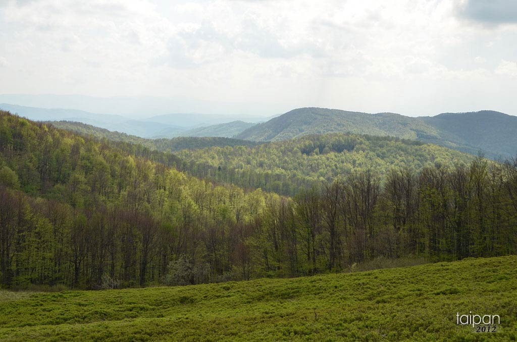 Bieszczadzki Park Narodowy. Wejście szlakiem czerwonym od strony Cisnej na Jasło (1153 m nmp.). Początkowe podejście z Cisnej jest dosyć męczące. Szlak głównie prowadzi przez lasy i jest słabo oznakowany. Łatwo przegapić nawet sam szczyt :) Skąd alternatywnie jest możliwość zejścia do Przysłupa, ale drogą leśną, z której to opcji skorzystałem. Na szczycie Jasła znajduje się betonowy słup geodezyjny. Roztaczają się stąd ładne panoramy, inne niż te widziane z połonin.