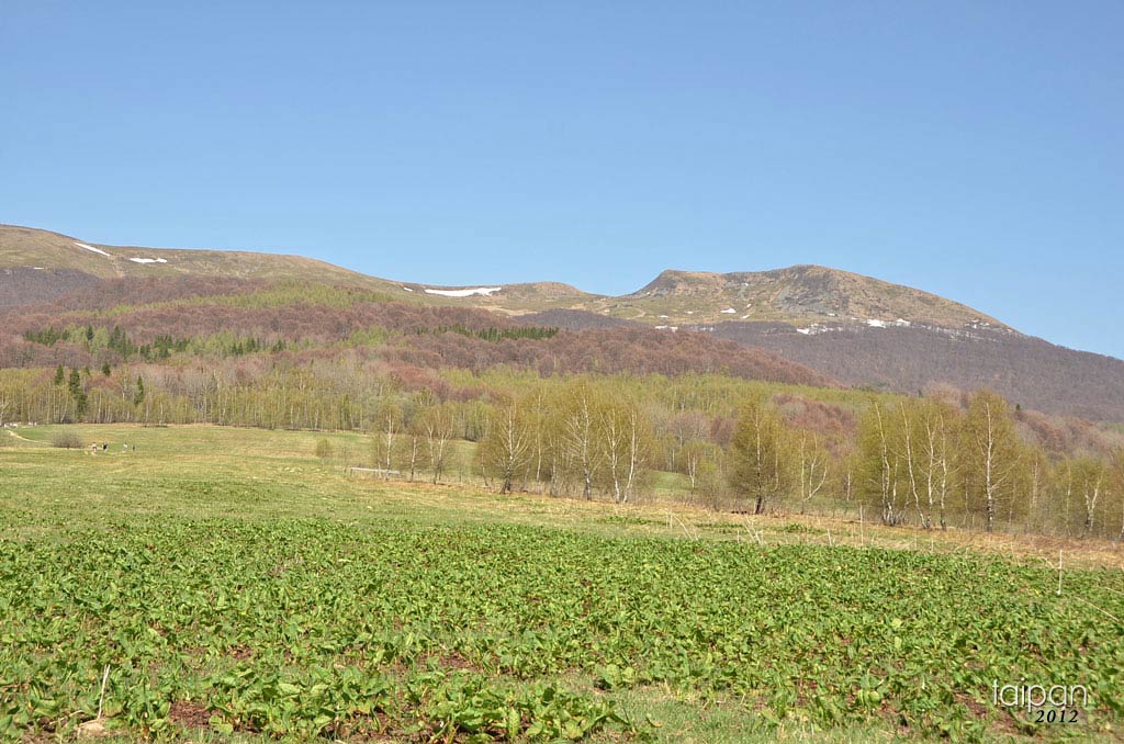 Widok na Szeroki Wierch i Tarnicę od strony wsi Wołosate.