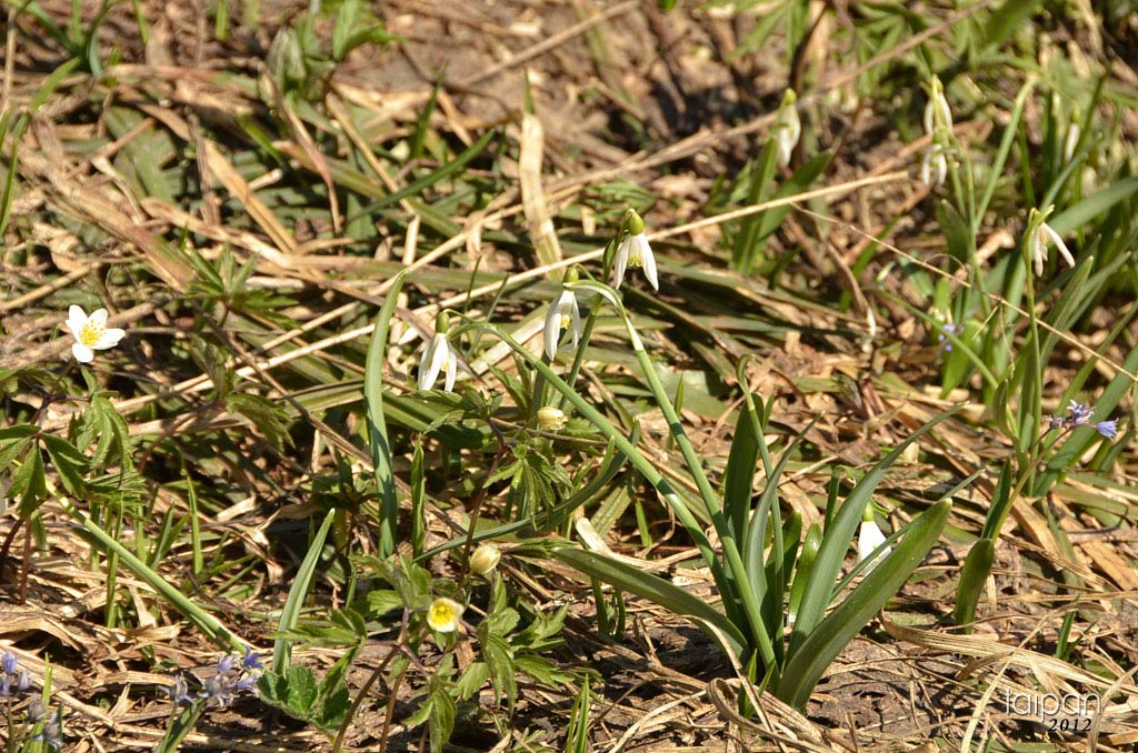 Śnieżyczka przebiśnieg i zawilec porastające połoninę.