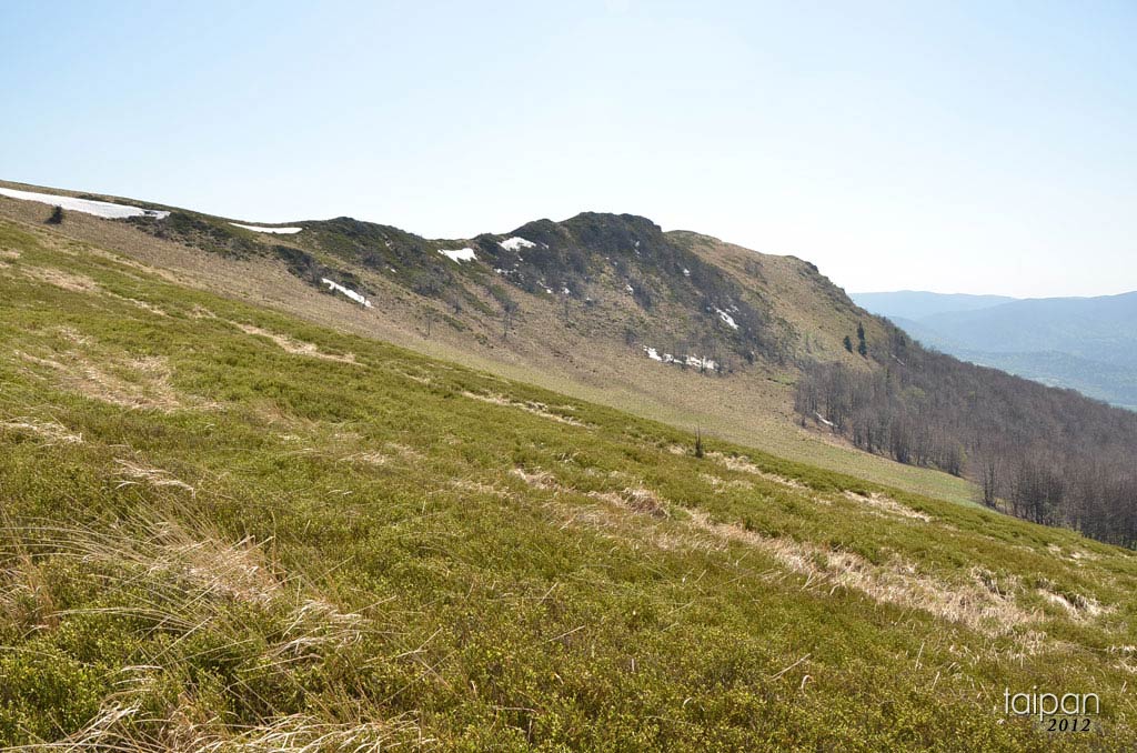 Bieszczadzki Park Narodowy. Wejście na masyw górski Połonina Wetlińska zaczynam od parkingu w Brzegach Górnych, dalej dosyć strome i męczące podejście do schroniska PTTK "Chatka Puchatka", dalej przejście przez jeden z najwyższych szczytów połoniny Osadzki Wierch (1251 m nmp.). Z Osadzkiego Wierchu kierowałem się zmierzałem do Przełęczy Orłowicza idąc przez Szare Berdo mijając po drodze strome urwisko Hnatowego Berda, z której (jak głosi legenda) po śmierci żony rzucił się na koniu zrozpaczony rycerz Hnat. Obok przechodzi się również obok powykręcanego od wiatrów lasu bukowego. Przy Przełęczy Orłowicza (1099 m nmp.) znajduje się skrzyżowanie szlaku żółtego i czerwonego. Wybieram dalej szlak czerwony i wchodzę na szczyt Smerek (1223 m npm.), na którym znajduje się krzyż. Panorama z tej góry jest warta polecenia! Zejście z góry okazaje się długie i męczące; czasami bardzo strome. Po 1,5 godziny schodzenia non stop na dole, przy parkingu, przepływa rzeka Wetlinka, w której można zamoczyć nogi i zrelaksować się :) Cała trasa jest dosyć długa, a jej przejście zajęło około 6-7 godzin, przez większość czasu idąc odkrytym terenem.