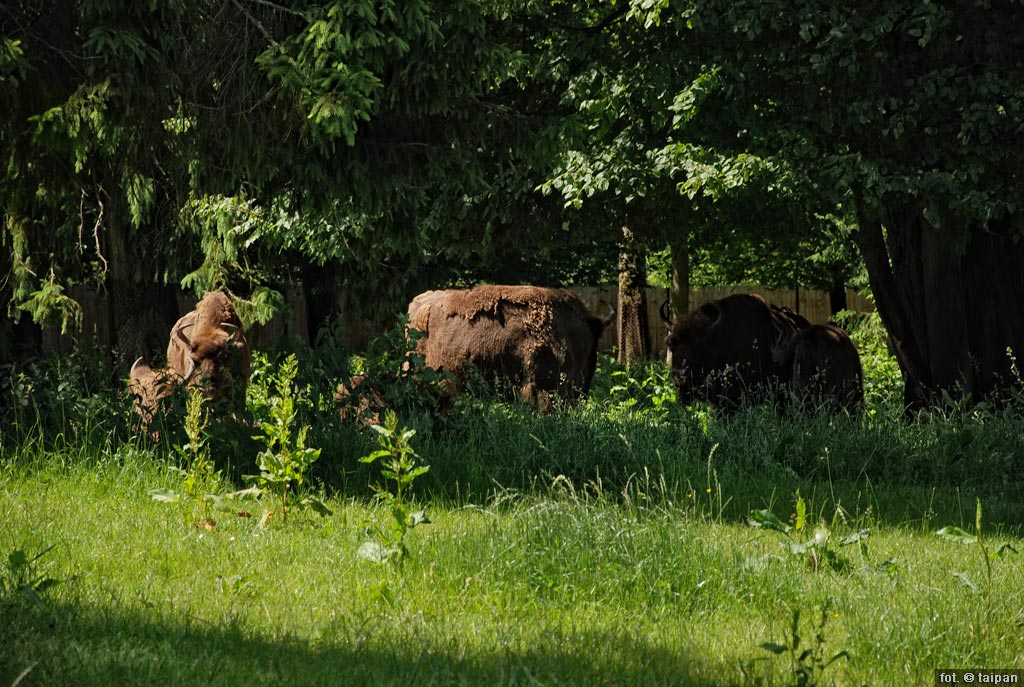 Zwierzyniec - rezerwat pokazowy zwierząt zamieszkujących Puszczę Białowieską, położony niedaleko drogi prowadzącej z Białowieży do Hajnówki. Na zdjęciu żubry.