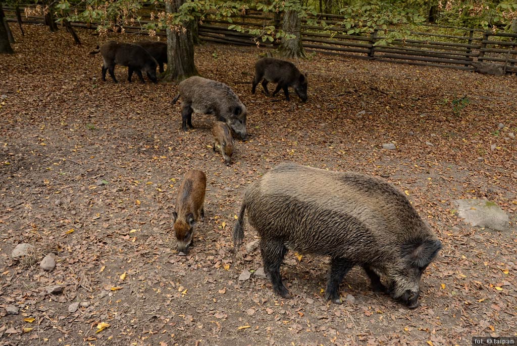 Zwierzyniec - rezerwat pokazowy zwierząt zamieszkujących Puszczę Białowieską, położony niedaleko drogi prowadzącej z Białowieży do Hajnówki. Na zdjęciu stado dzików.