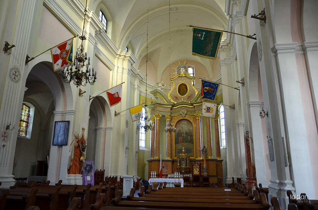 Zespół klasztorny jezuitów przy ul. Kościelnej. Na zdjęciu znajduje się wnętrze kościóła pw. Trójcy Przenajświętszej zbudowanego w latach 1696-1709. Wnętrze kościoła zostało zniszczone na początku II wojny światowej i odremontowane w 1944 r.