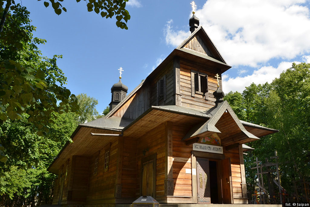 Drewniana cerkiew pw. Przemienienia Pańskiego (zbudowana w 1998 r. w miejscu spalonej w 1990 r. cerkwi) na Świętej Górze Grabarce, gmina Nurzec-Stacja, powiat siemiatycki, województwo podlaskie. Miejsce pierwszego cudu w 1710 r. - ocalenia przed epidemią cholery. Święta Góra Grabarka jest najważniejszym miejscem kultu religijnego dla wyznawców prawosławia w Polsce. Znajduje się tu żeński monaster śww. Marty i Marii, a także 3 klasztorne cerkwie.