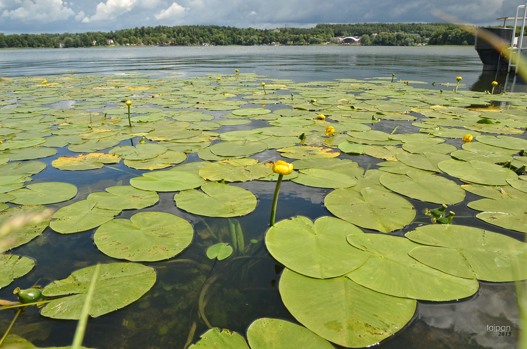 Grążel żółty rosnący na jeziorze Czos w Mrągowie