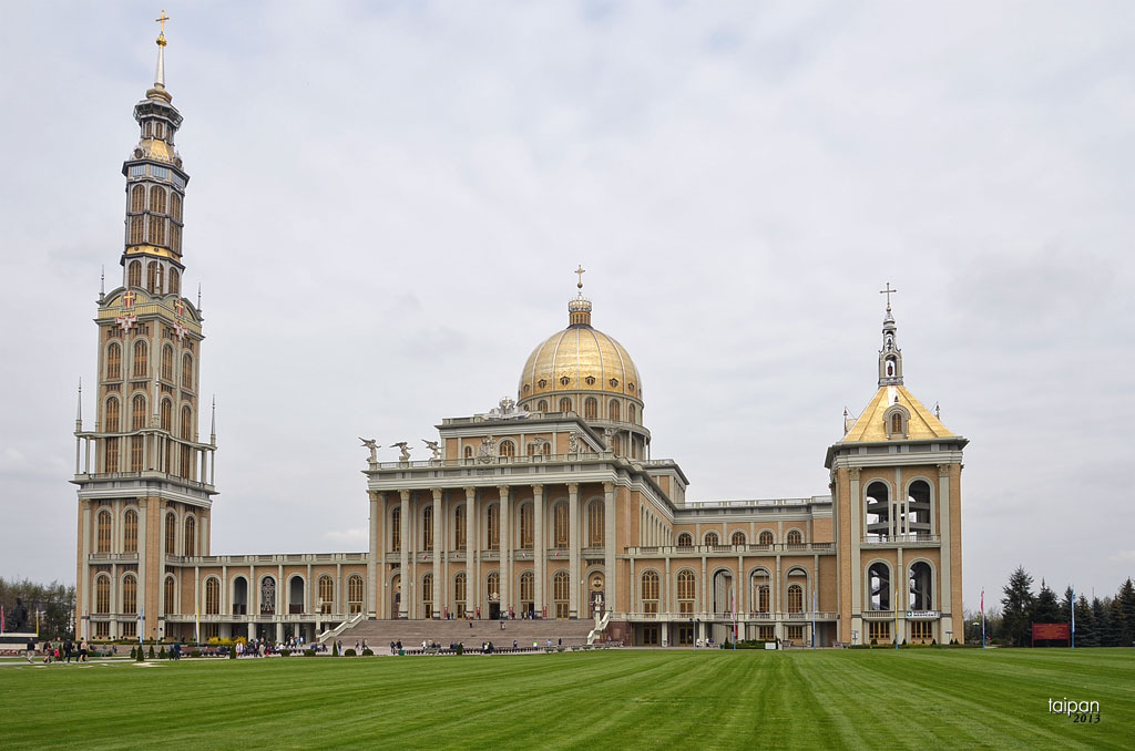 Obecna świątynia (zbudowana w latach 1994-2004) jest jedną z największych i najwyższych na świecie, oraz największą w Polsce. Znajduje się w niej 365 okien symbolizujące dni w roku, 52 otwory drzwiowe - tyle co tygodni w roku, oraz 12 kolumn symbolizujących apostołów.