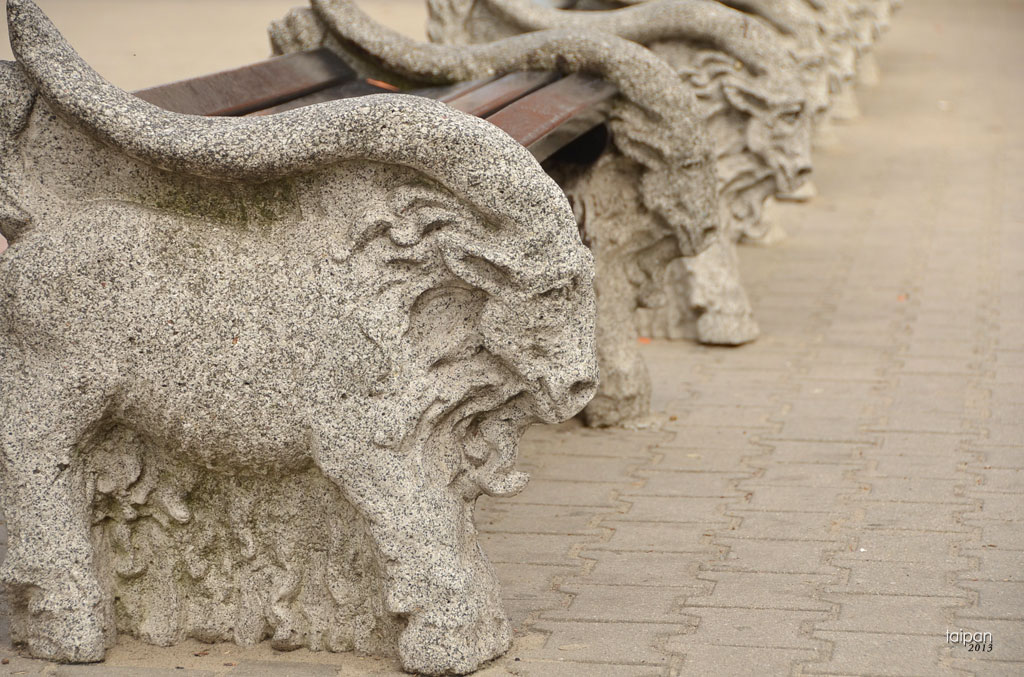 Ławki z koziołkami będącymi symbolem Poznania. Ławki znajdują się przy skrzyżowaniu ulic Powstańców Wielkopolskich i Franciszka Ratajczaka.