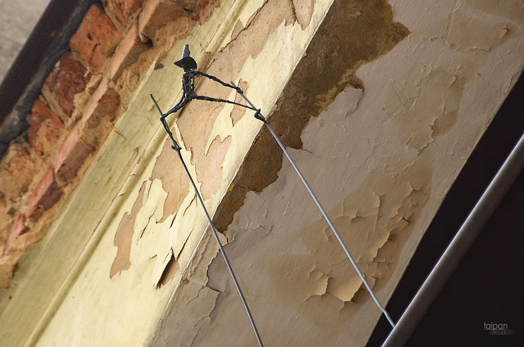 W połowie ulicy Półwiejskiej kilka metrów nad głowami, przy jednej z kamienic znajduje się wykonana z metalu miniaturowa podniebna galeria Mietala Gryzy.