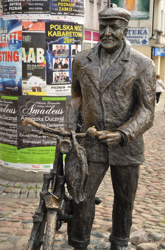 Pomnik Starego Marycha przy ul. Półwiejskiej - fikcyjnej radiowej postaci mówiącej gwarą poznańską stworzona przez Juliusza Kubla.