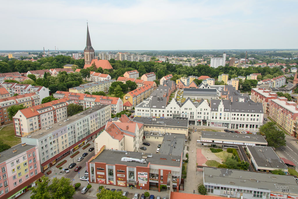 Panorama Stargardu widziana z wieży widokowej na szczycie kolegiaty.