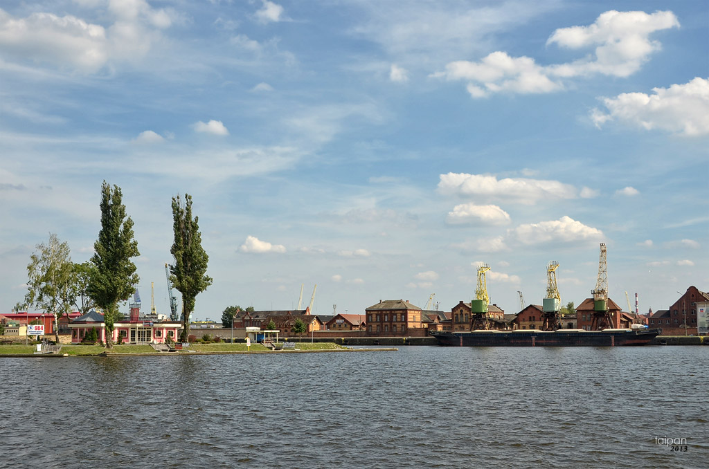 Wysepka Bielawa i Nabrzeże Starówka - zabytkowe budynki na cyplu Łasztowni.
