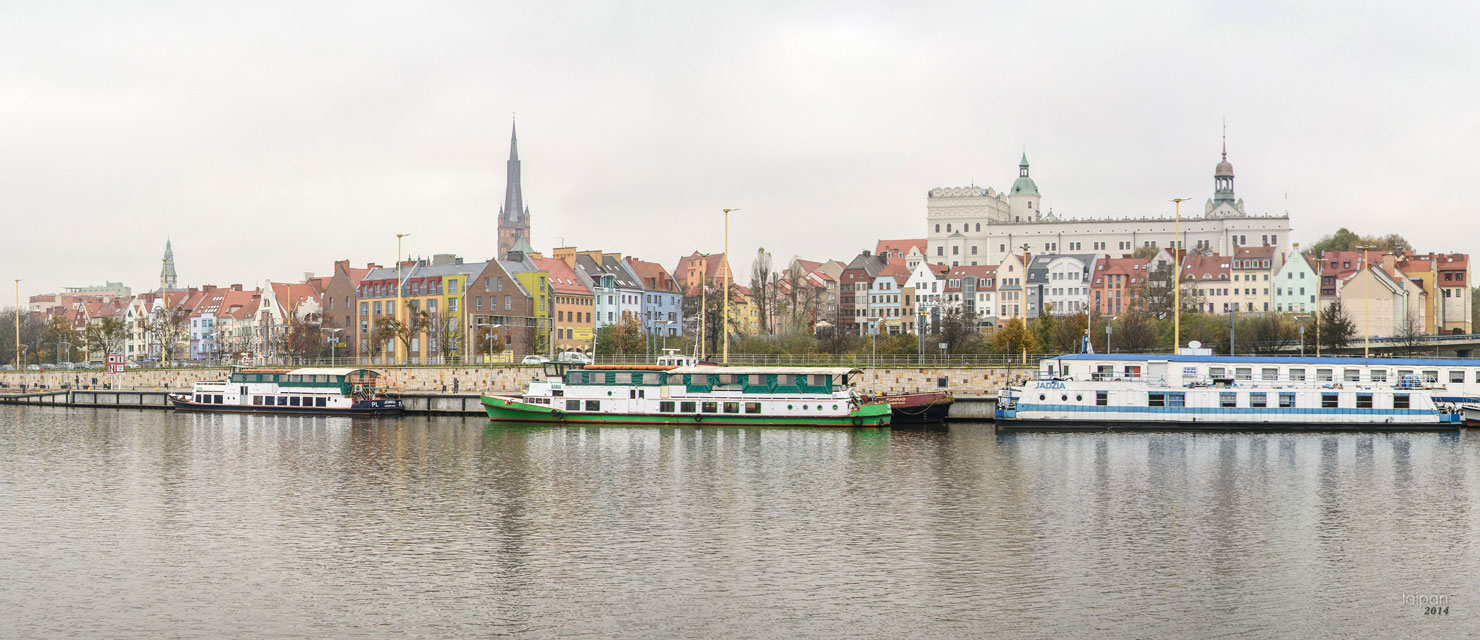 Panorama Szczecina nad Odrą widziana z ulicy Zbożowej.