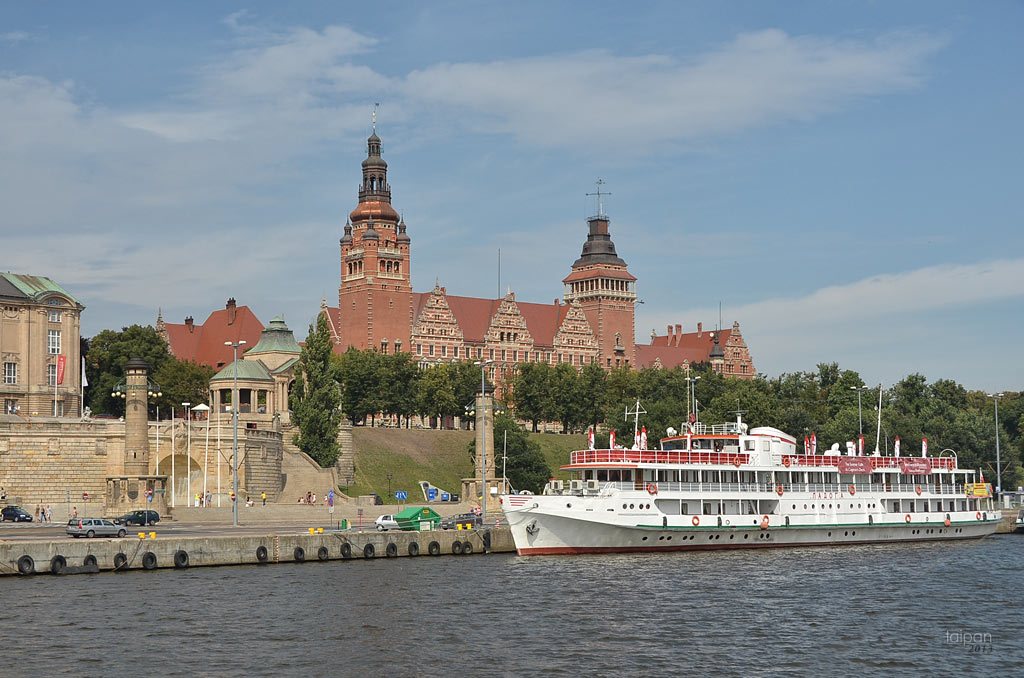 Zabytkowy budynek Urzędu Wojewódzkiego, oddany do użytku w 1911 roku, położony przy Wałach Chrobrego w Szczecinie.