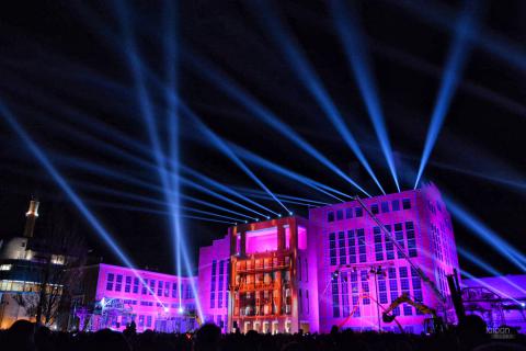 Pasaż Róży przy ulicy Piotrkowskiej, w której elewacje budynków wyłożone są fragmentami luster